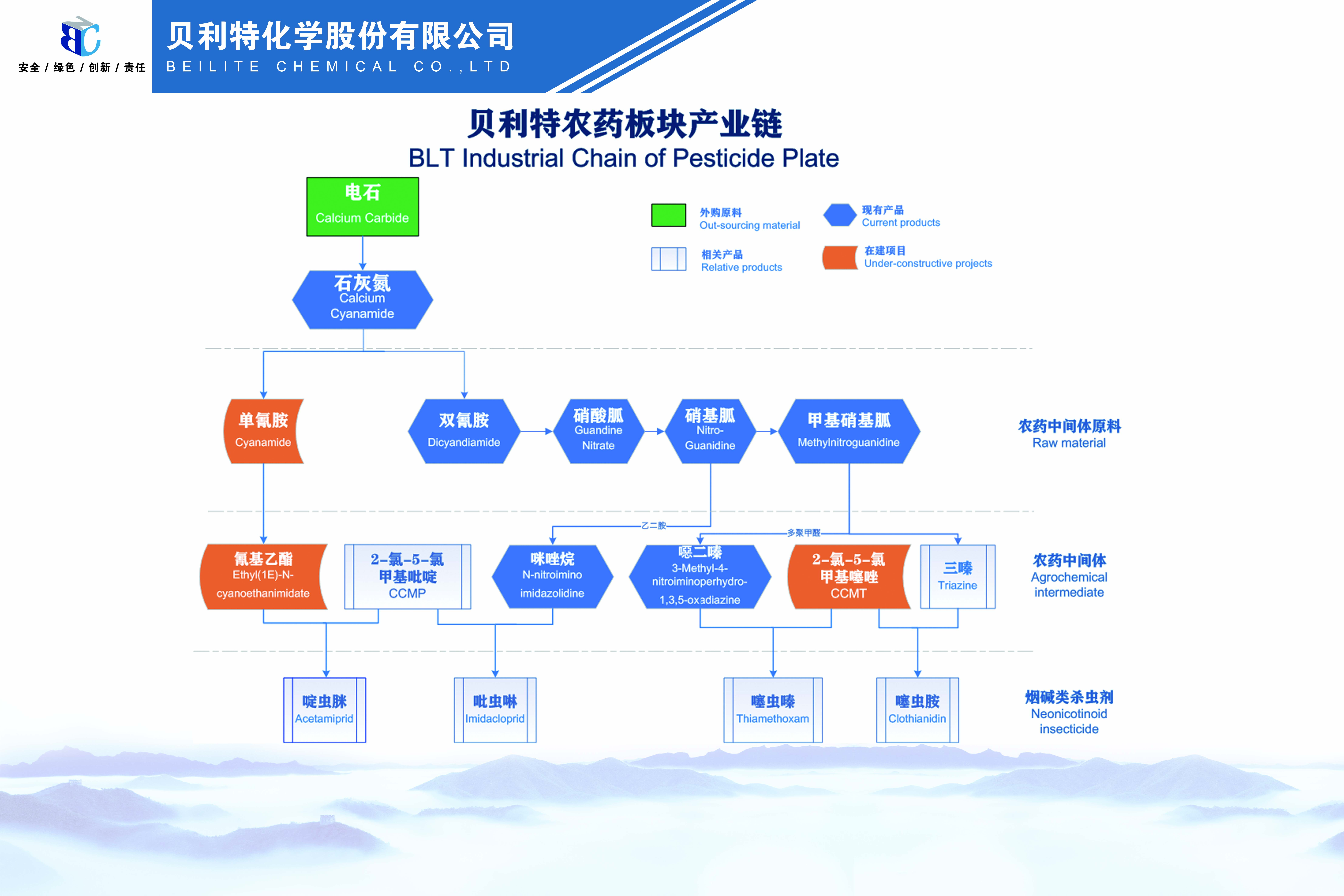 公司致力于提高氰胺行业生产技术水平,目前在技术研发、成果转化、节能减排、提质降耗、自动化升级方面成绩突出,在区域特色优势产业化发展中的起到了积极地示范引导作用。